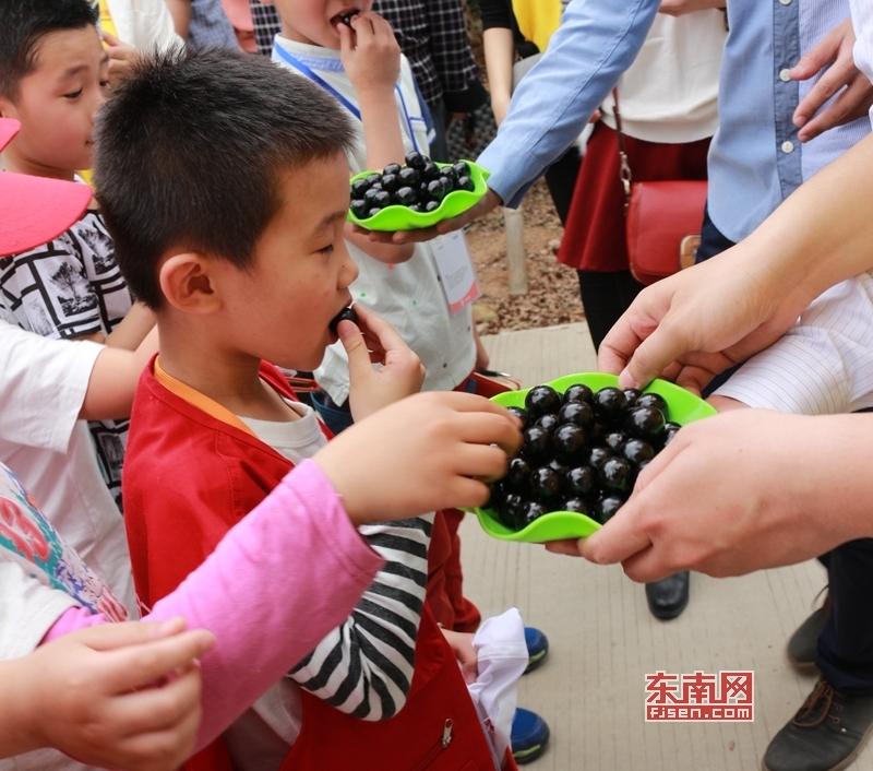 一边品尝着树葡萄,一边听着小记者们对园区的工作人员进行了采访,在叔叔们的介绍下,小朋友们了解到,原来树葡萄学名叫嘉宝果,原产于巴西,所含的营养价值极高,从小树苗成长到开花结果需要八年的时间,最特别的是,它的花和果子是长在树干上的,长大后的树葡萄一年四季都会开花结果。“这棵树葡萄已经12岁了,比我还大耶!”这生活中少见的植物令小记者们大开眼界。 |