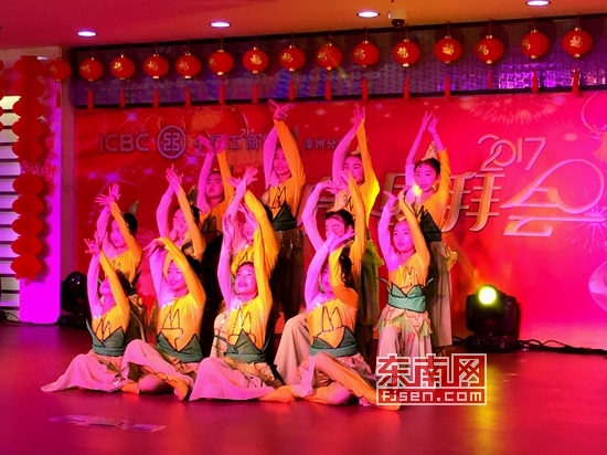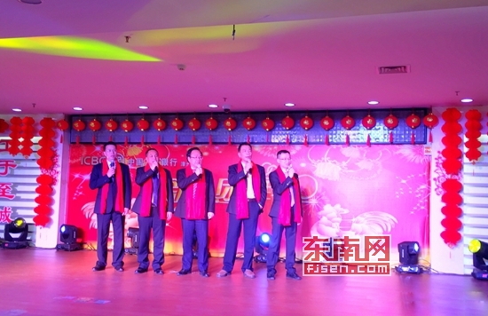 为充分展现工行企业文化创建成果,营造欢乐、祥和、廉洁、喜庆的节日氛围,2017年1月21日晚,工行漳州分行举办2017年新春团拜晚会。 晚上7:30,工行漳州分行二楼大会议室灯火辉煌,彩球飘扬,在欢快、轻松的音乐中,漳州分行“2016年新春团拜会”拉开了帷幕。团结是承载希望的风帆,是凝聚力量的希望之光,分行党委书记、行长黄金坤首先致辞,领导班子成员集体给员工拜年祝福并合唱脍炙人口的经典歌曲《团结就是力量》。
